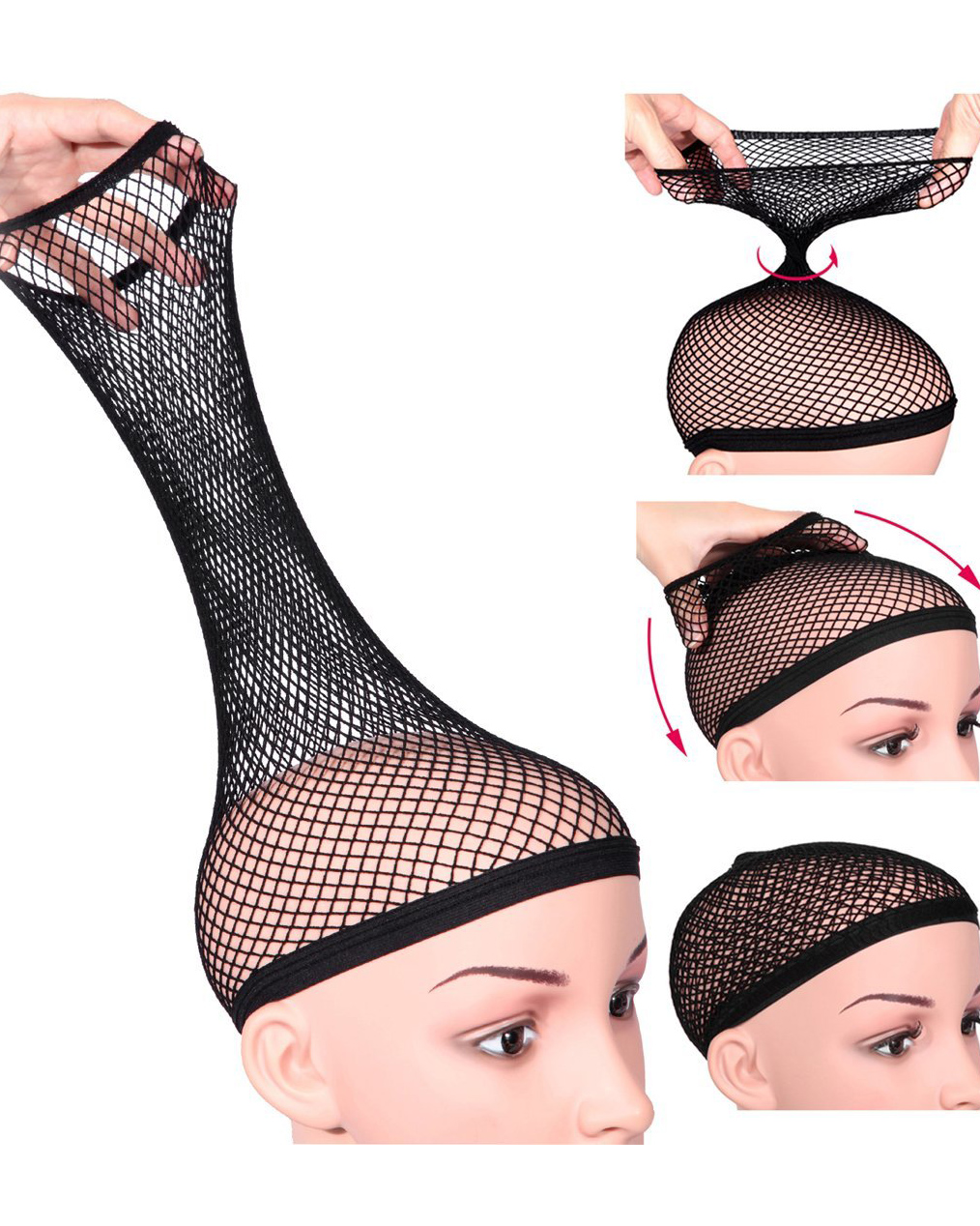 2 Pieces One Size Nylon Wig Cap Black